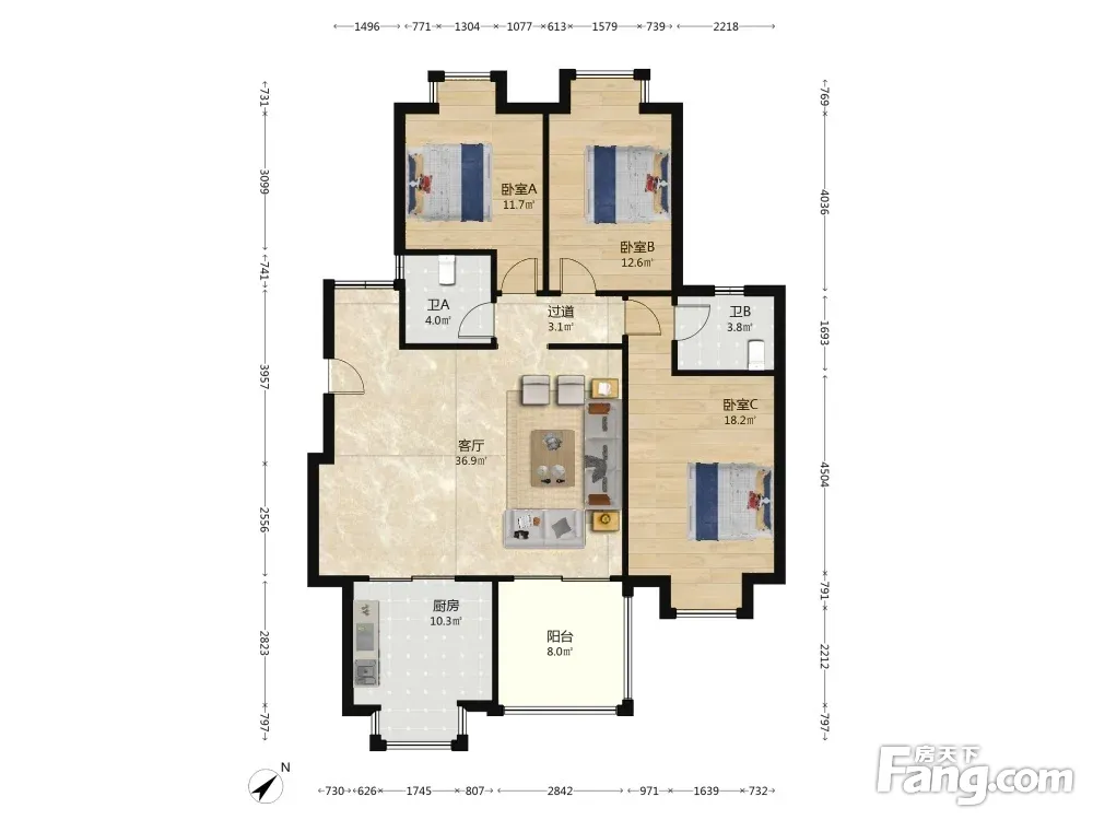 户型齐全,主打户型方正,明卫,明厨,主卧朝南三居