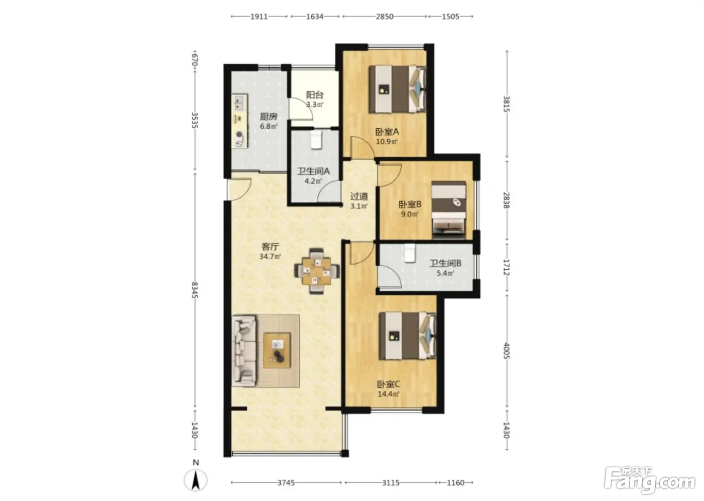 户型齐全,主打全明格局,动静分离,采光充足三居
