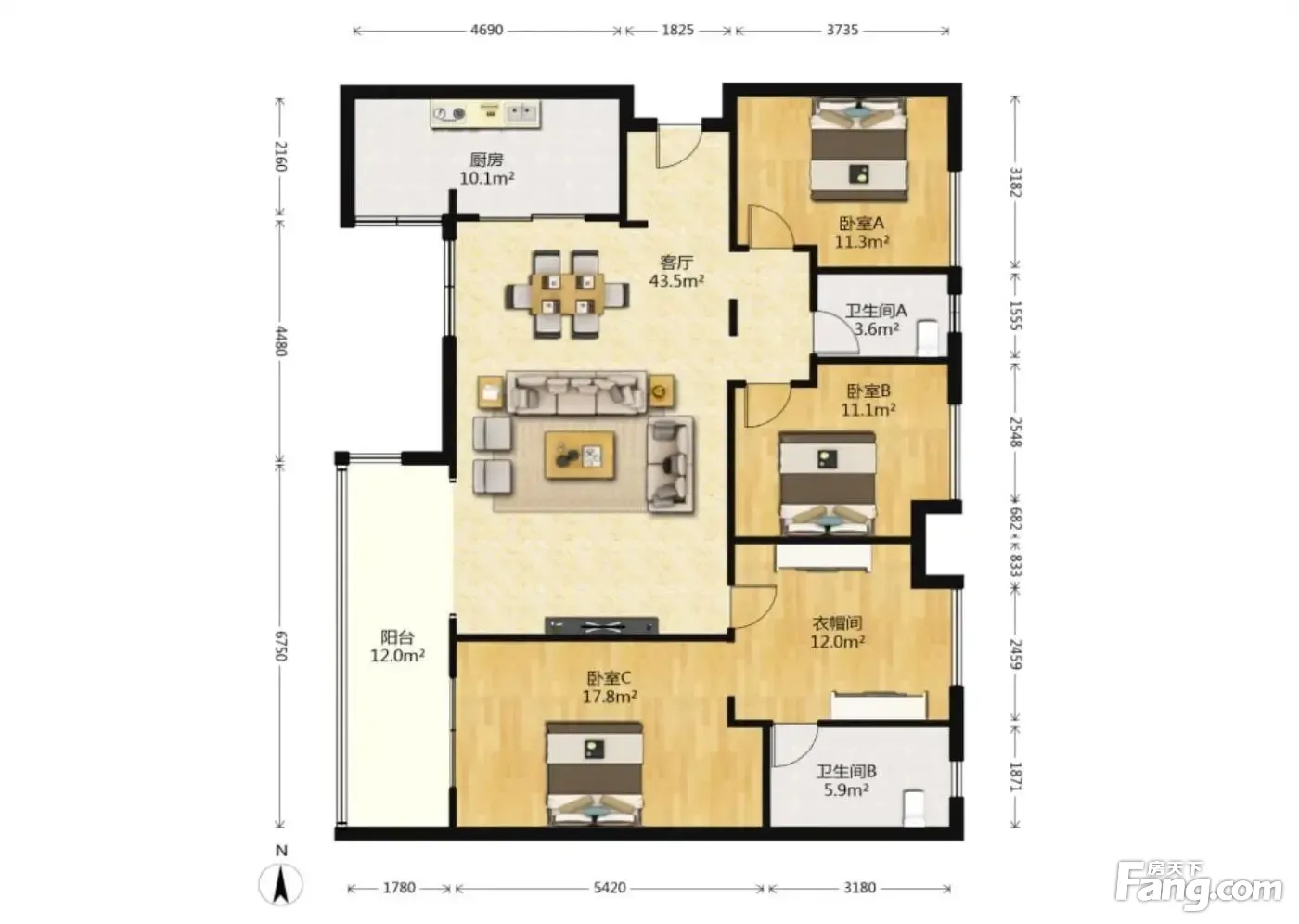 户型齐全,主打全明格局,动静分离,采光充足三居