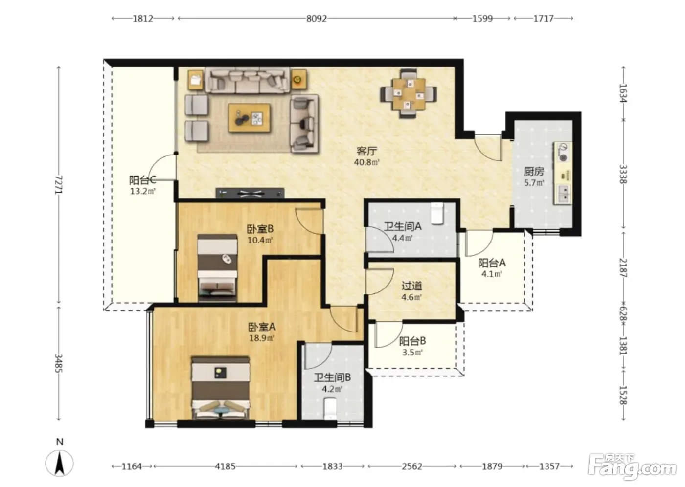 户型齐全,主打南北通透,带衣帽间,大面宽阳台,带露台三居