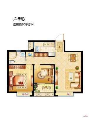 户型齐全,主打户型方正,主卧朝南三居