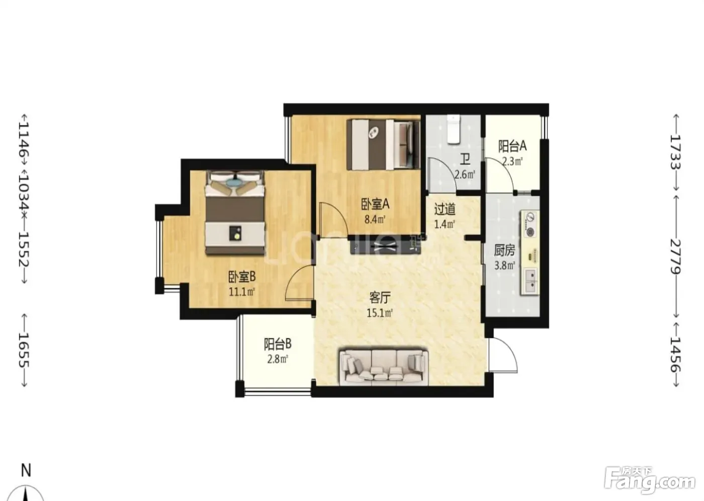 花果园M区 2室1厅 东北