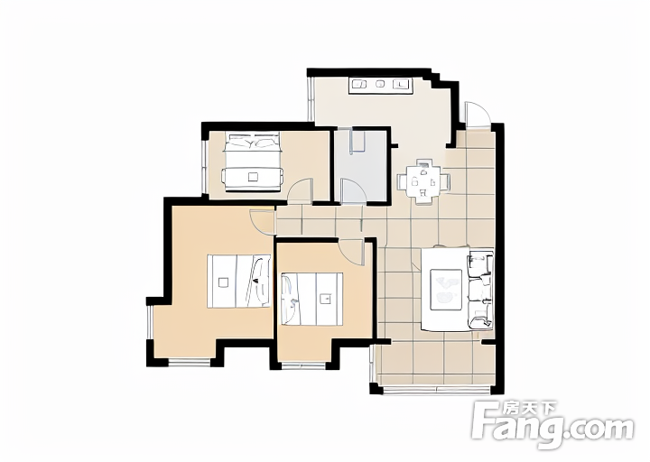 户型齐全,主打南北通透,主卧带卫,户型方正,干湿分离三居
