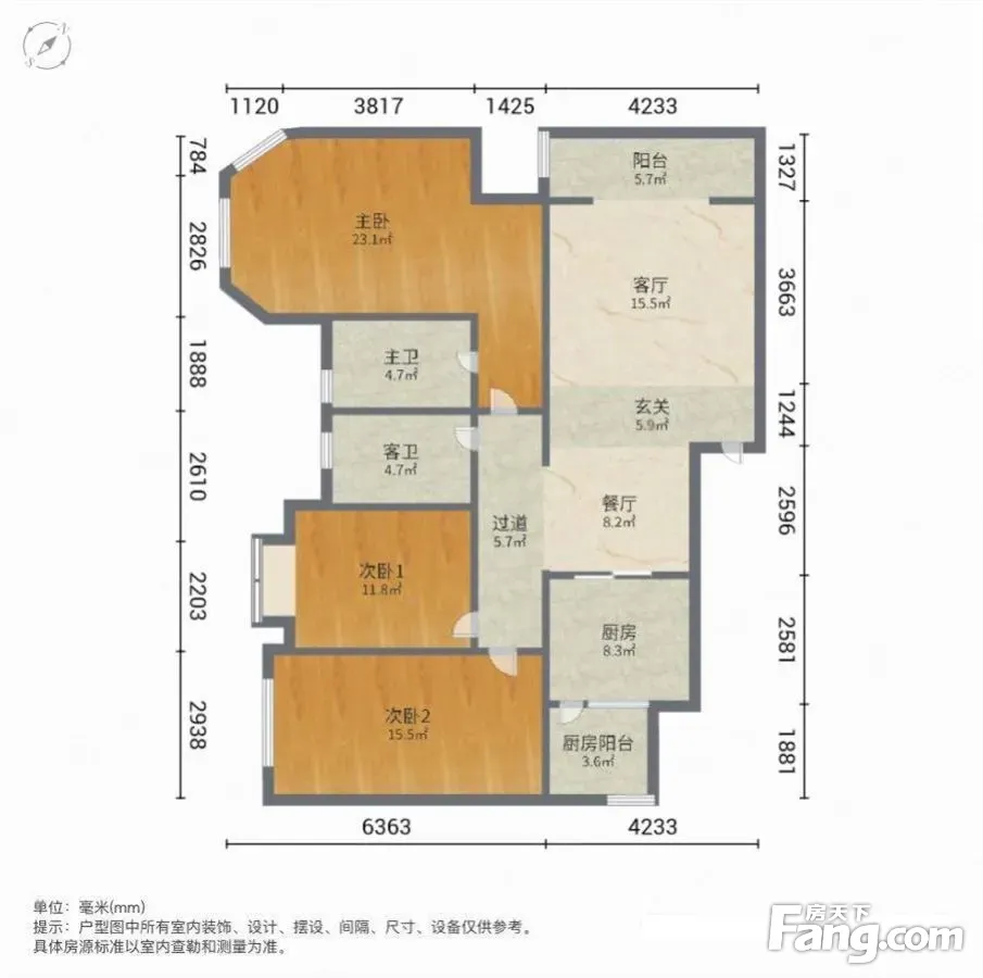 户型齐全,主打明卫,独立衣帽间,客厅朝南,双卧朝南三居