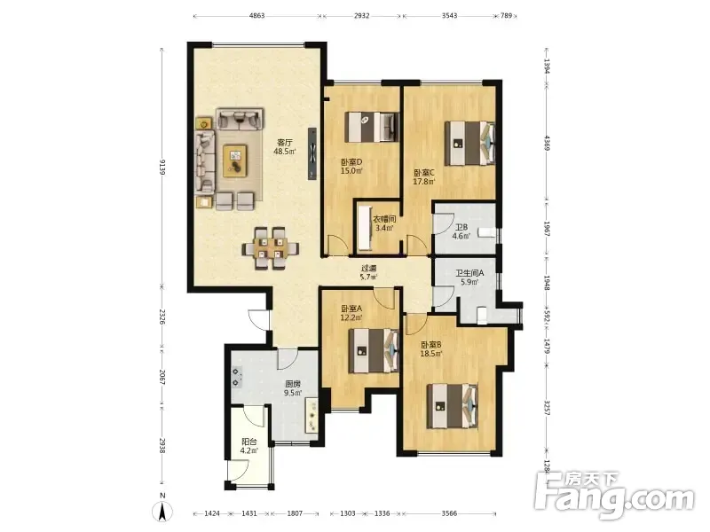 银海元隆·熙府 4室1厅 南 北
