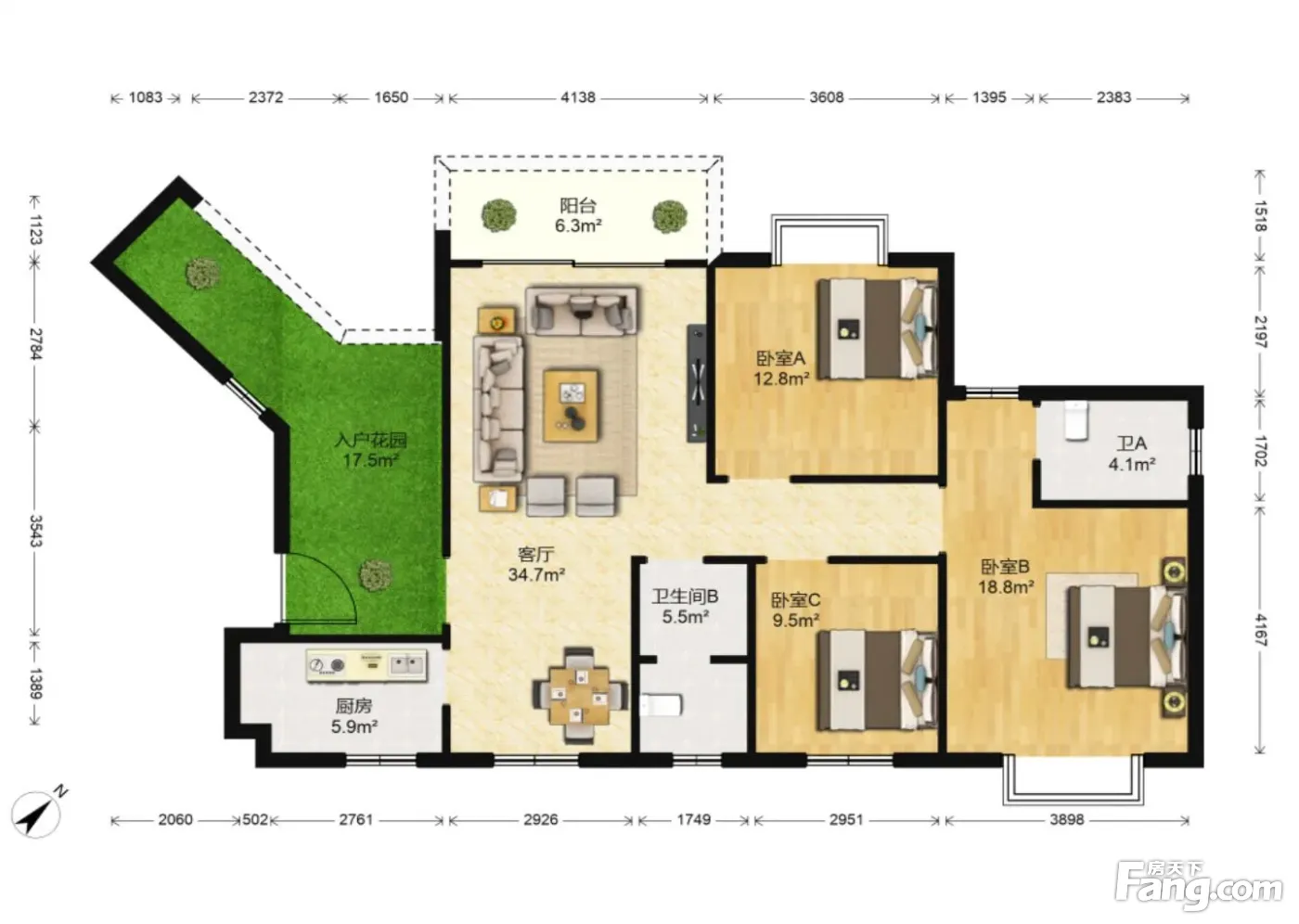 户型方正,南北通透