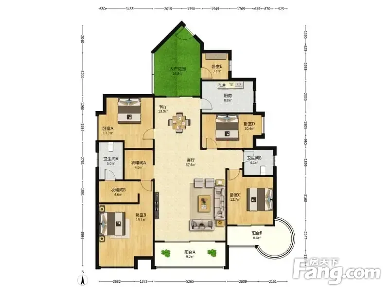 户型齐全,主打户型方正,明卫,明厨,独立衣帽间四居
