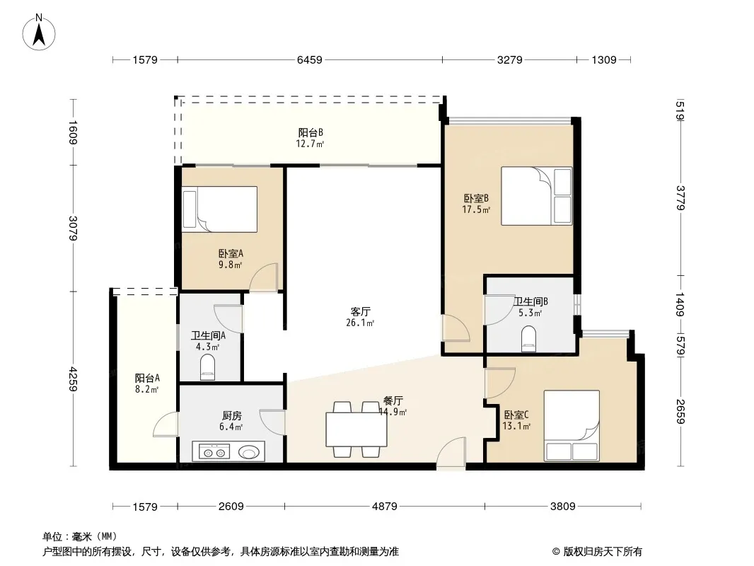 户型齐全,主打明卫,双阳台三居