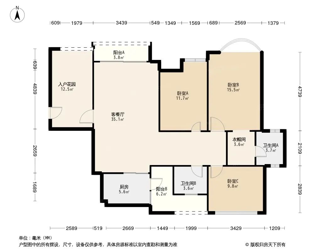 户型齐全,主打全明格局,户型方正,动静分离,采光充足三居
