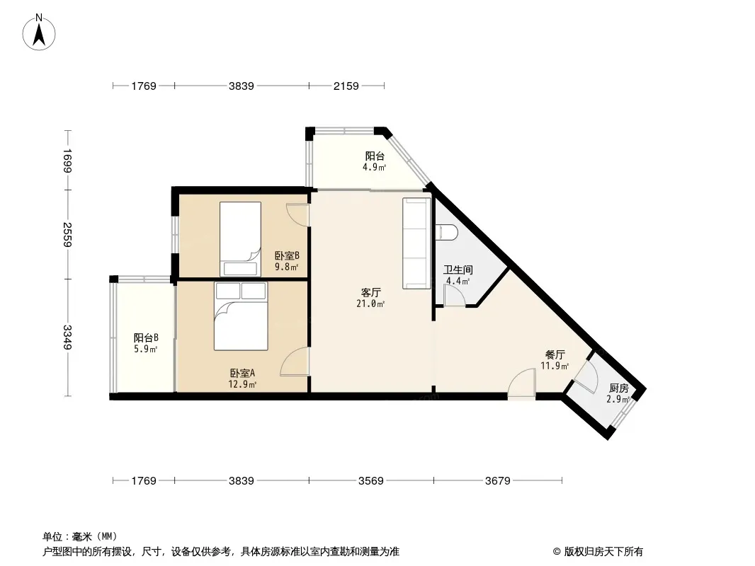 户型齐全,主打主卧朝南二居