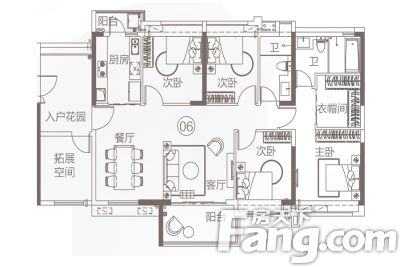 户型齐全,主打全明格局,主卧带卫,入户花园三居