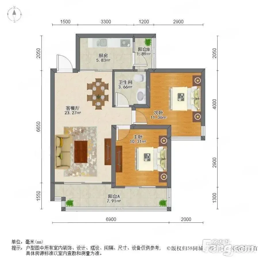 2室2厅1卫