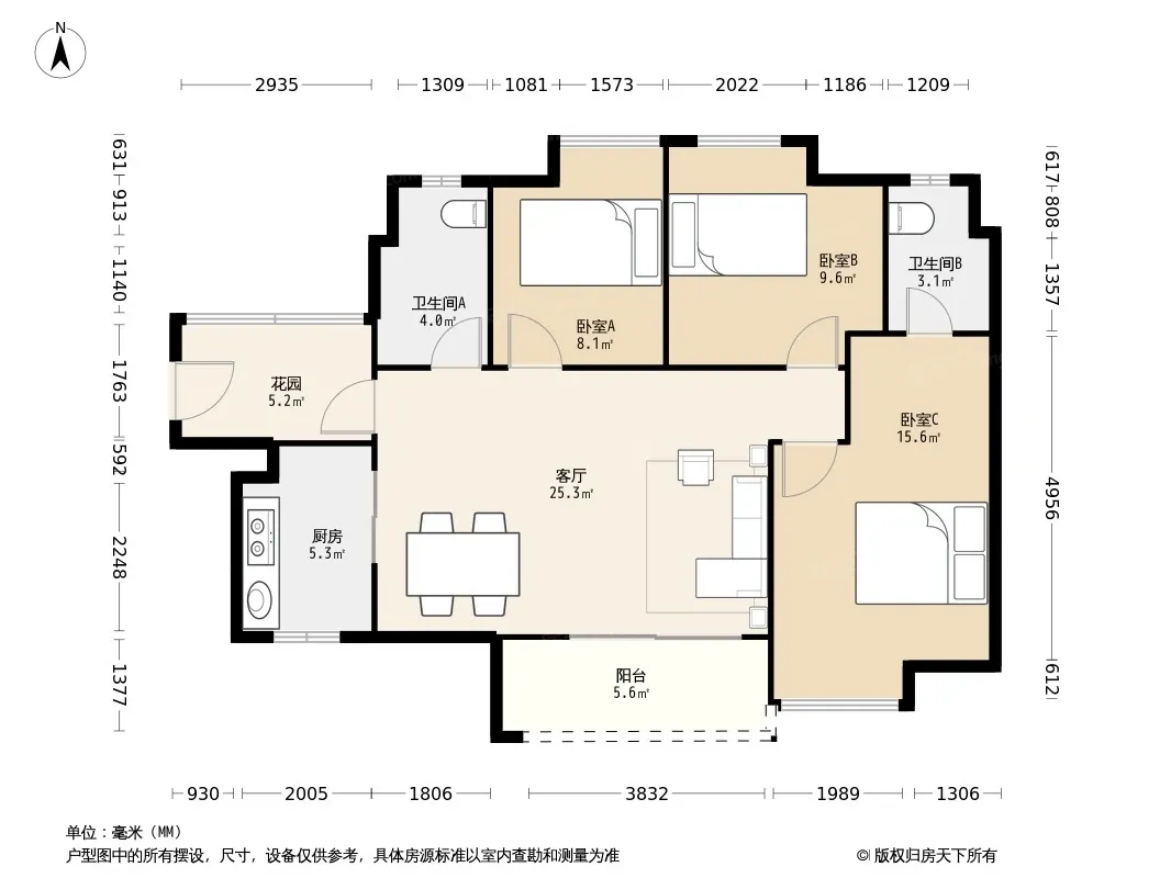 户型齐全,主打户型方正,明卫三居