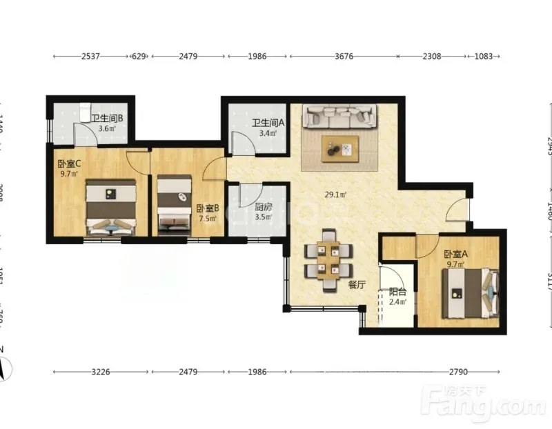 3室1厅2卫