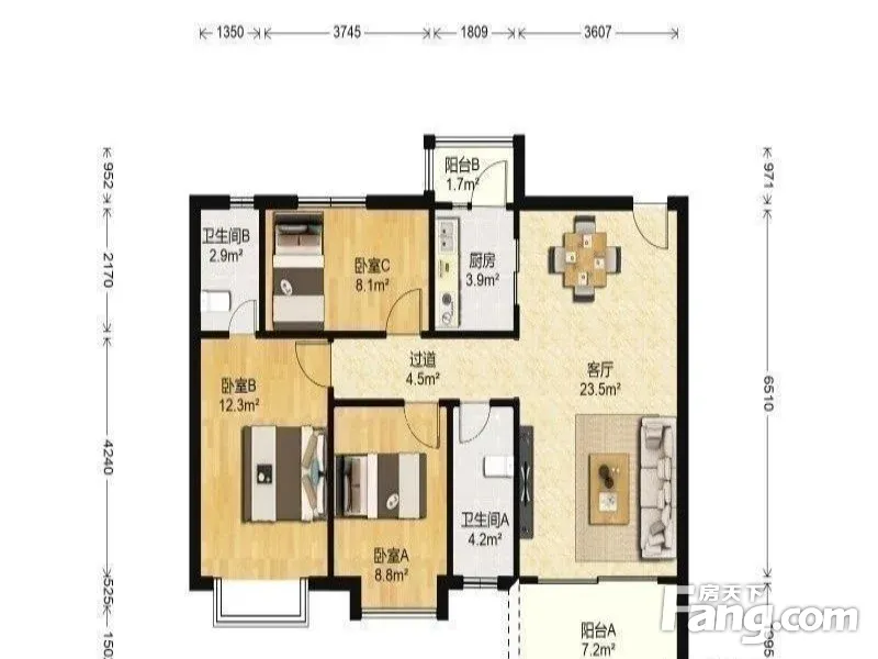 3室1厅2卫