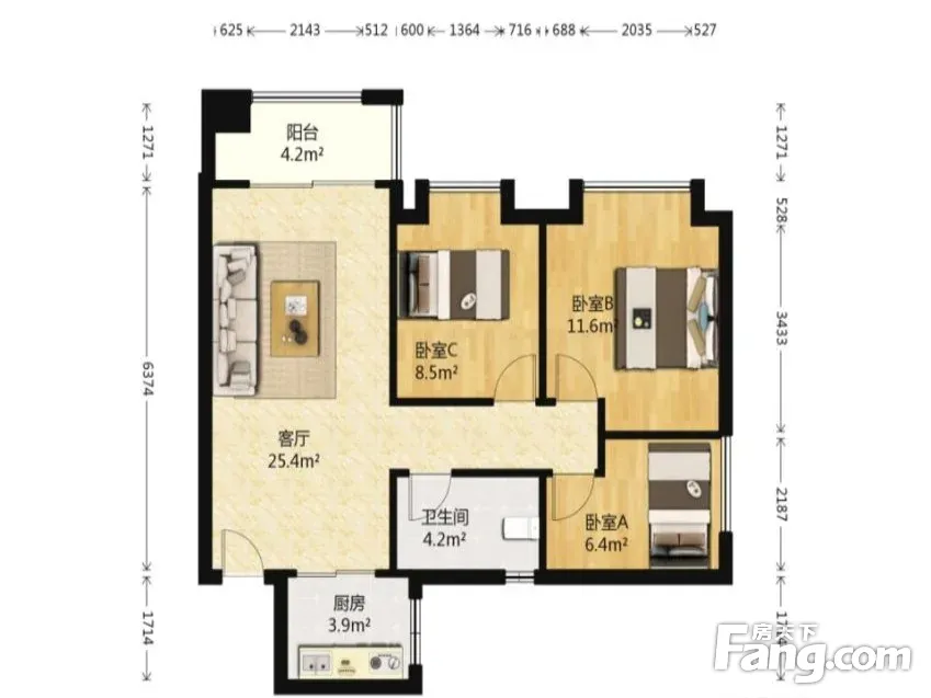 3室2厅1卫