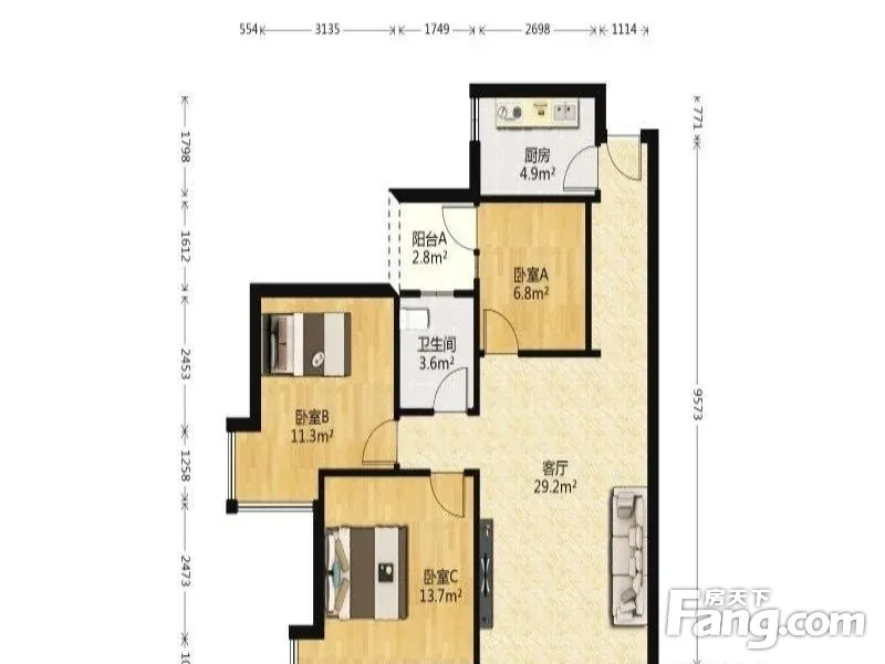 3室2厅1卫