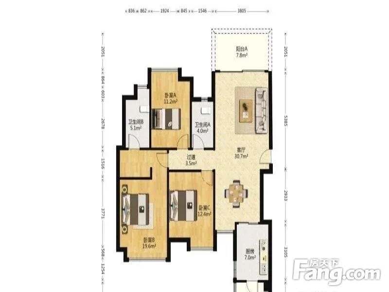 3室1厅2卫