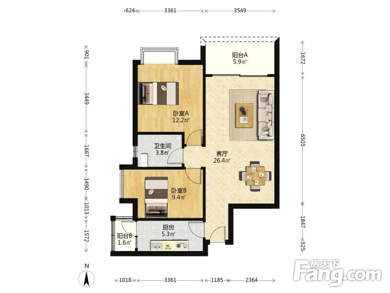 户型齐全,主打户型方正,明卫,客厅朝南,双阳台三居