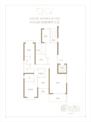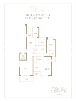 世茂天越户型主要有206平-213平的全明格局,户型方正的四居 、187平-192平的全明格局,户型方正的五居 、160平-160平的全明格局,户型方正的三居 。