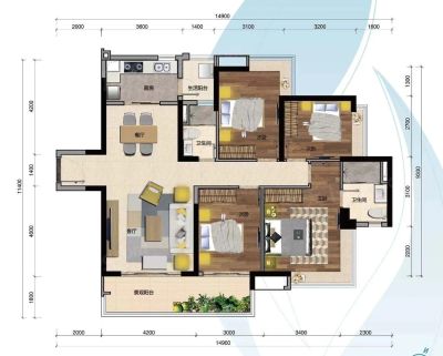 户型齐全,主打全明格局,户型方正,明厨明卫三居