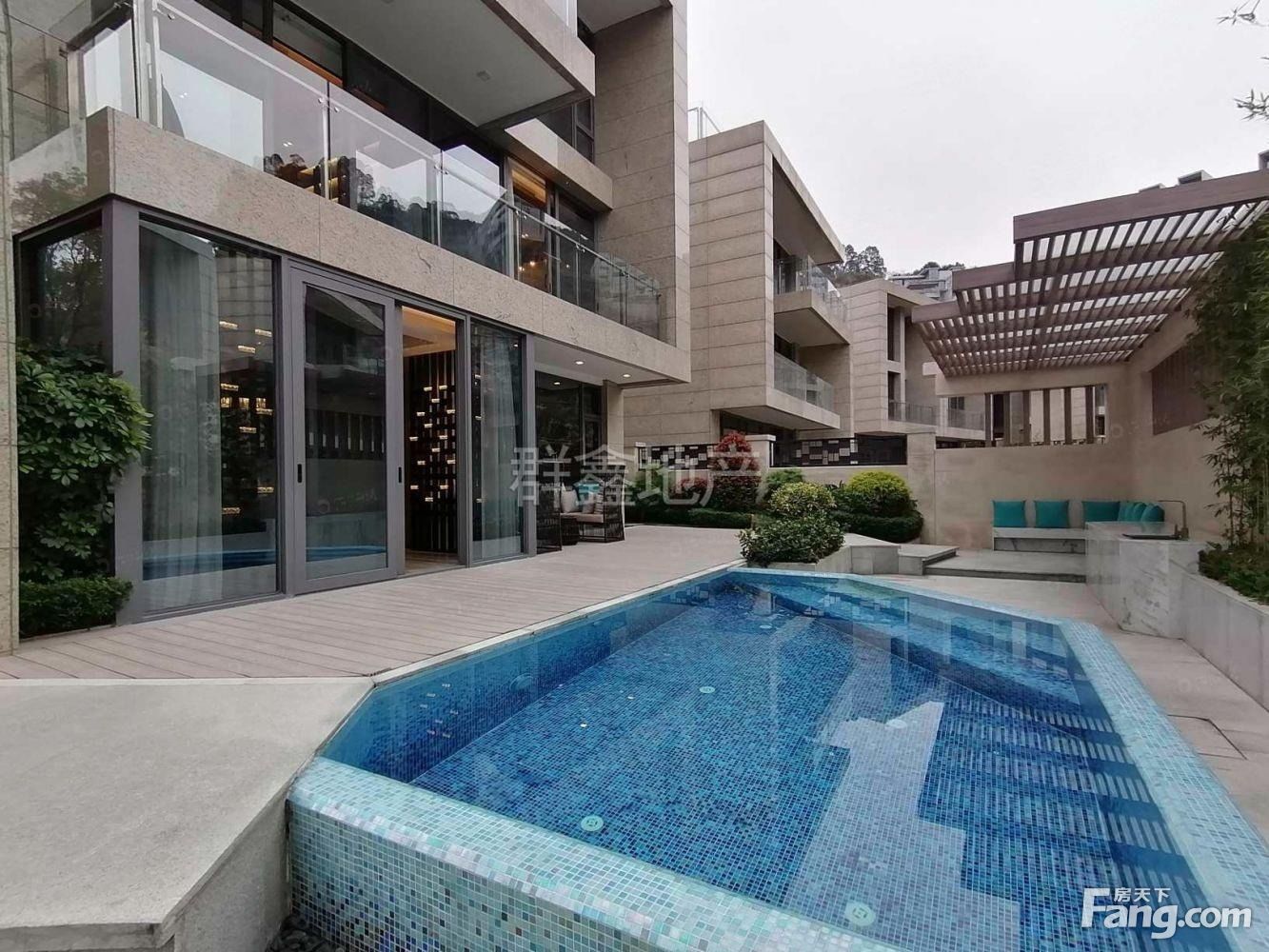 房子状况1.前后左右花园约500方2.全屋大金空调。3.园林两颗罗汉松高约3米半。 4.中式风现代装,保养好,即买即住,房间实木地板,红色琉璃瓦坡地屋顶,中间玻璃天窗透光,客厅米色大理石铺贴。6.正南正北向,东西南北全通透有窗户。7.独有私家泳池,私密性 8.地处别墅区中间高位位置,防水性!