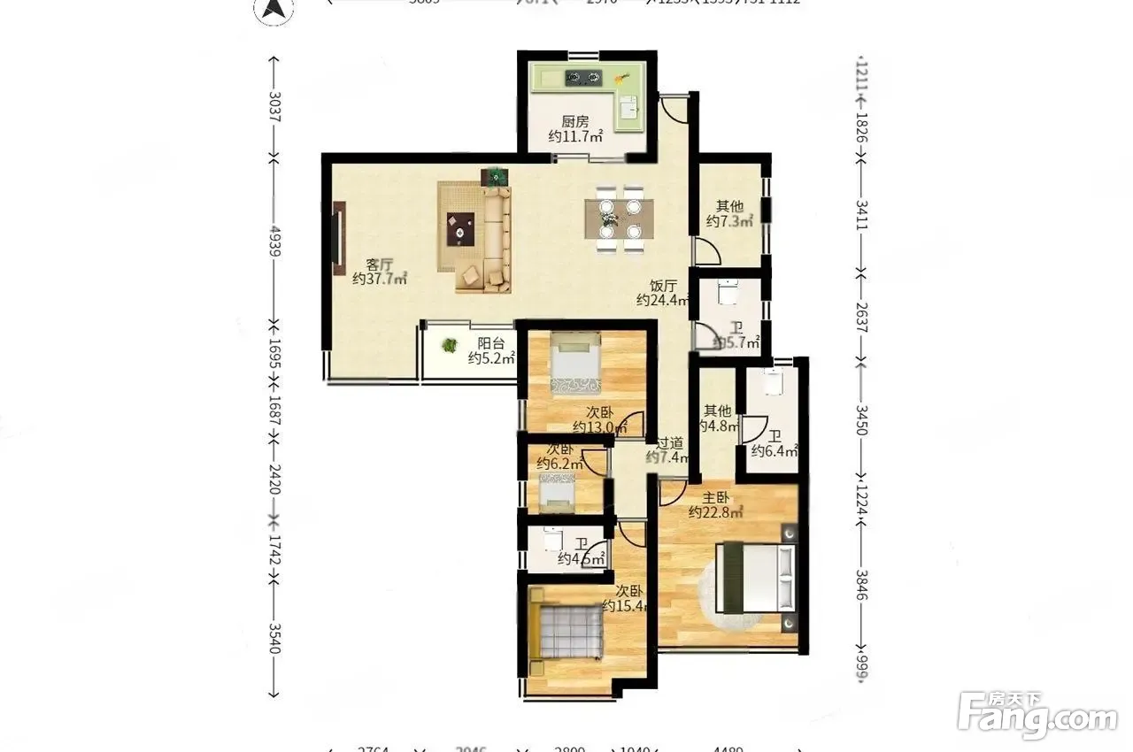 1、户型:5室2厅1厨3卫2阳台 。 2、朝向:南北通透 ,采光好,日照充足。 3、装修:精装修 。 4、交通:地理位置优越,交通便利,地铁跟公交都很方便。