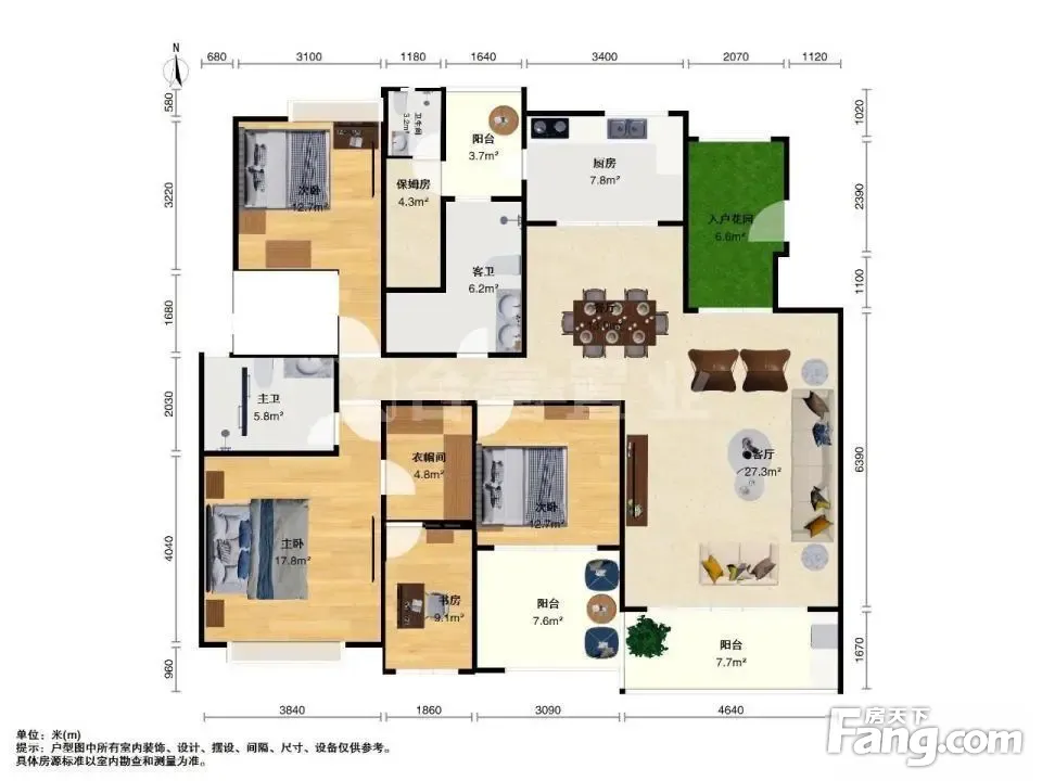 1、户型:4室2厅1厨4卫2阳台 。 2、朝向:南北通透 ,采光好,日照充足。 3、装修:精装修 。 4、交通:地理位置优越,交通便利,地铁跟公交都很方便。