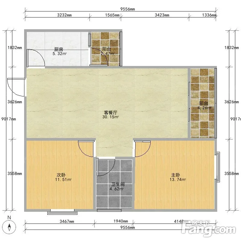 户型齐全,主打客厅朝南,主卧朝南二居