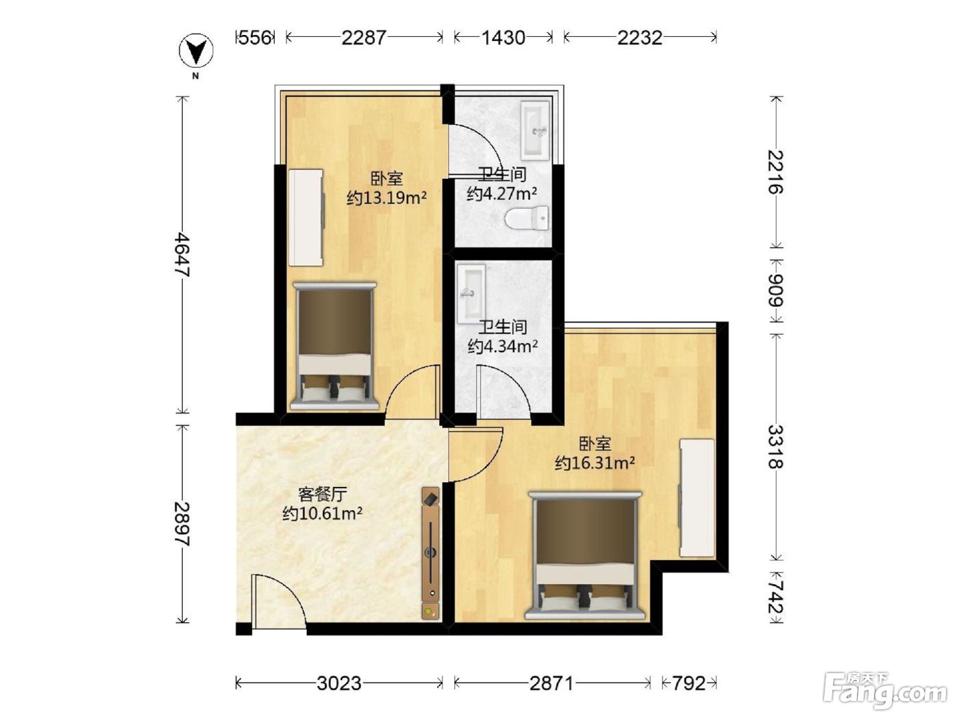 2室1厅2卫