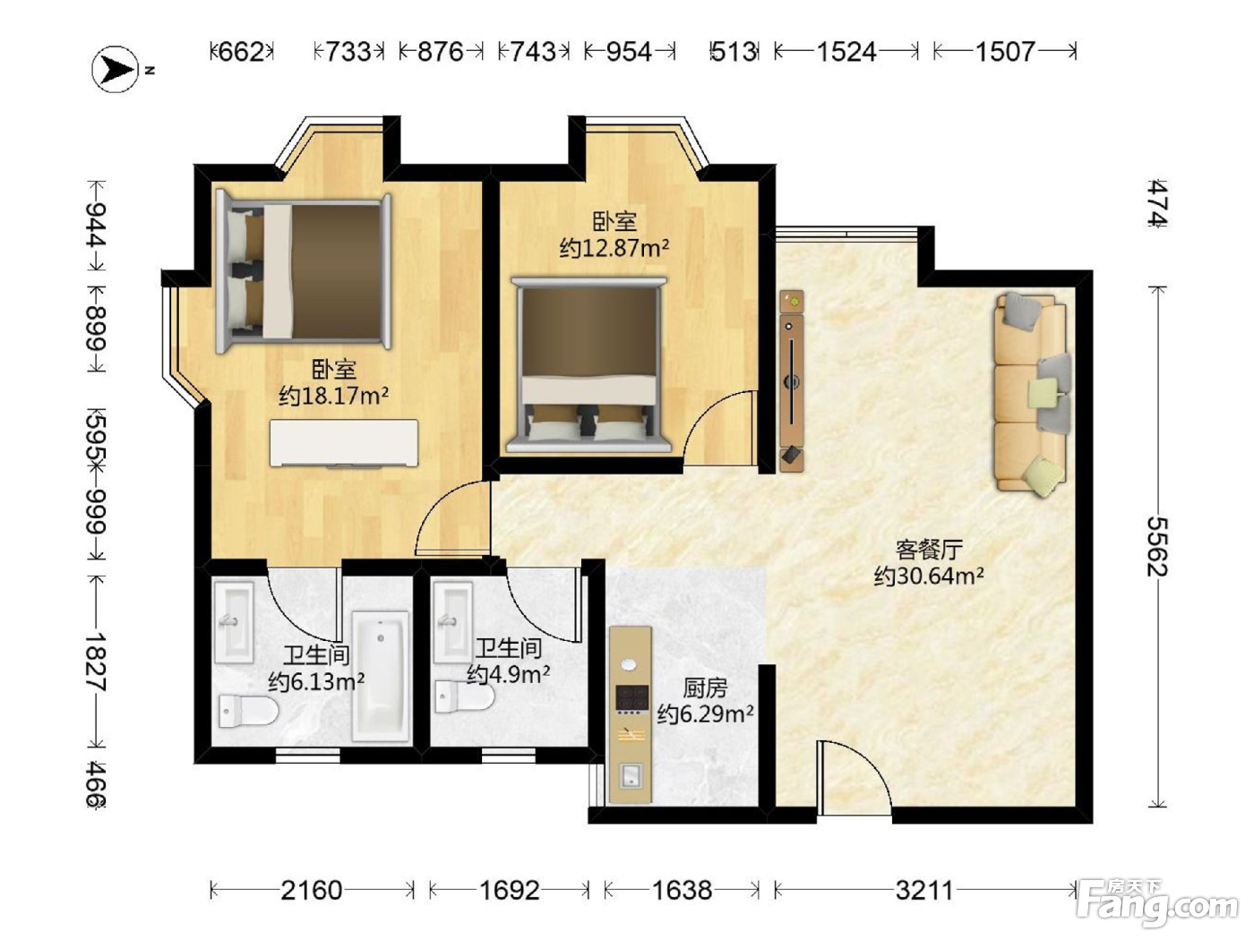 2室1厅2卫