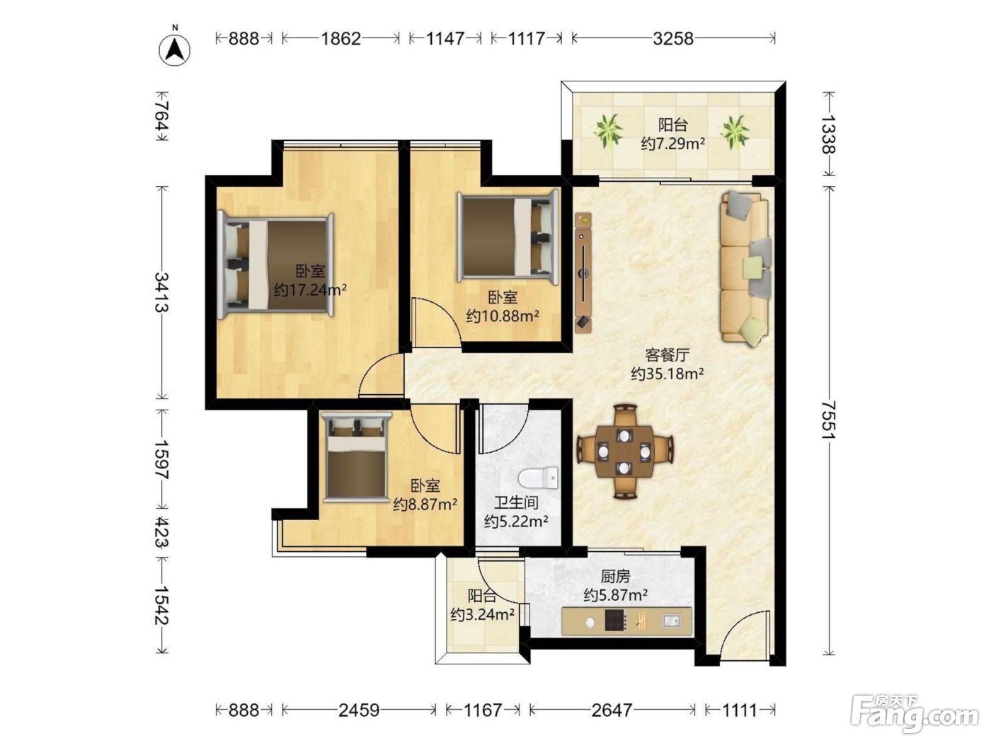 3室2厅1卫