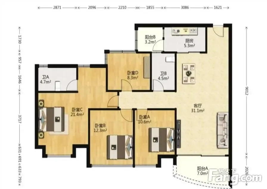 *获取完整户型报告,同时会有免费语音讲解服务