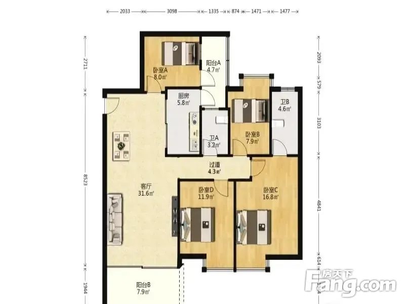 4室1厅2卫