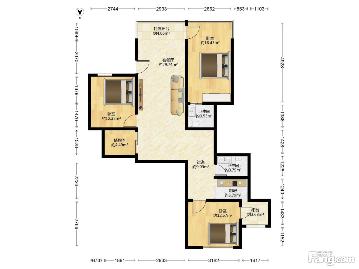 户型齐全,主打客厅朝南二居