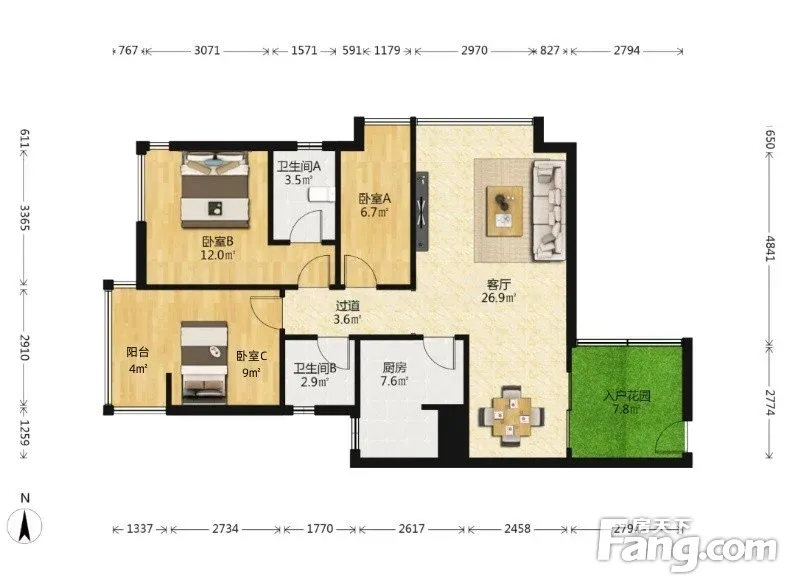 3室1厅2卫