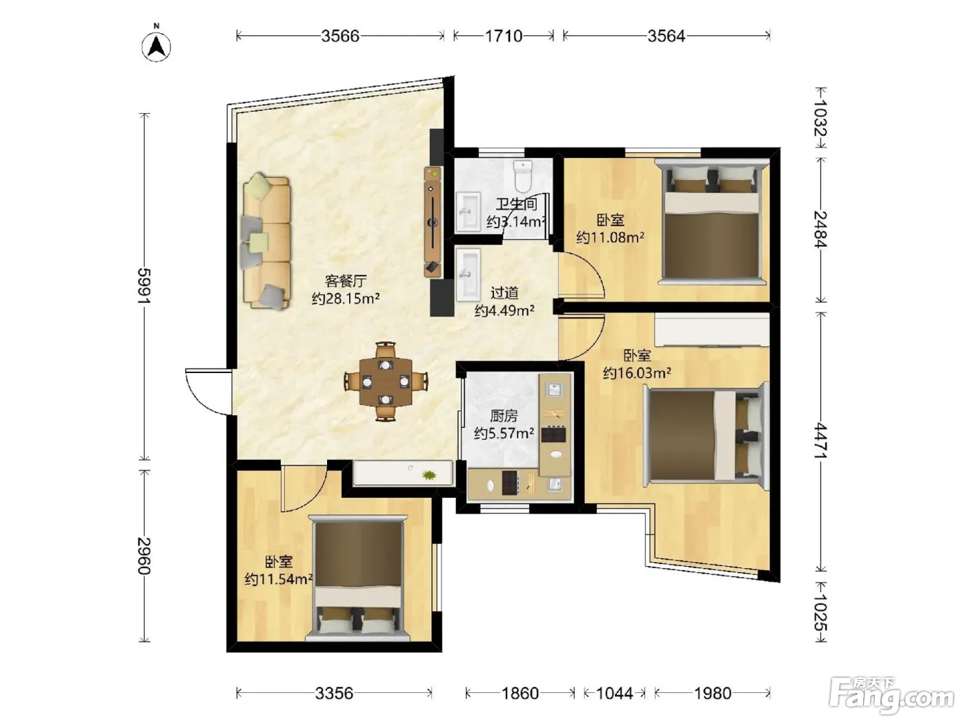 3室2厅1卫