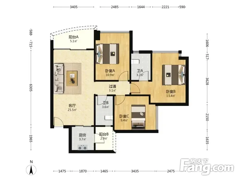 3室2厅1卫
