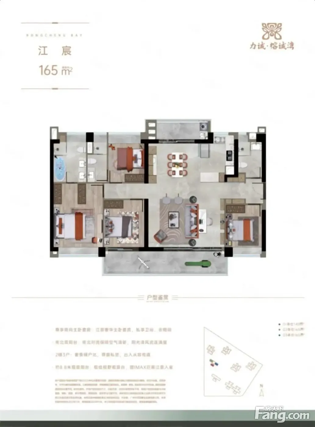 诚汇新都·榕诚湾户型主要有85平-97平的全明格局,高附赠空间,主卧套间,观景飘窗,U型厨房,干湿分离,大面宽阳台的二居 。