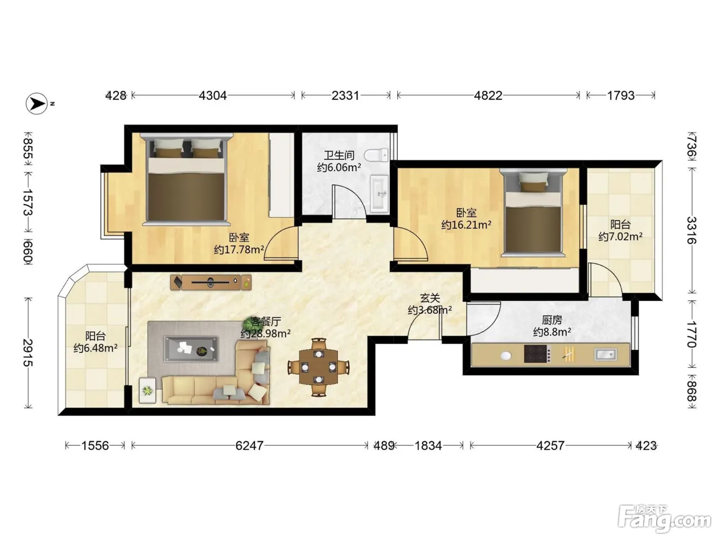 芳草轩 2 房 95 方