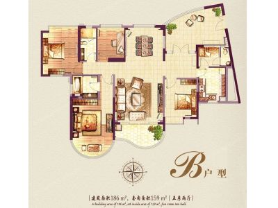 合生紫龙府户型主要有145平-188平的明厨,明卫,客厅朝南的四居 、156平-186平的露台,观景飘窗,全明格局,干湿分离的五居 。