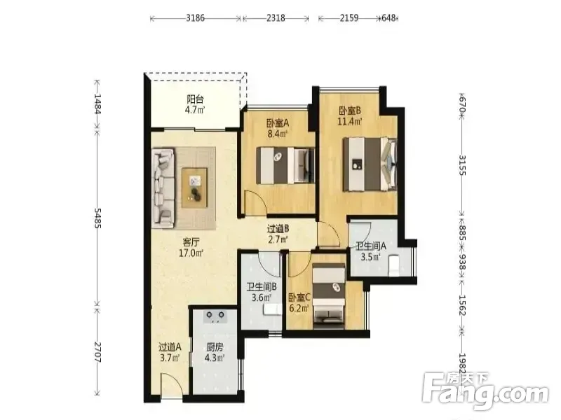时代名著(增城) 3室1厅 83.34平