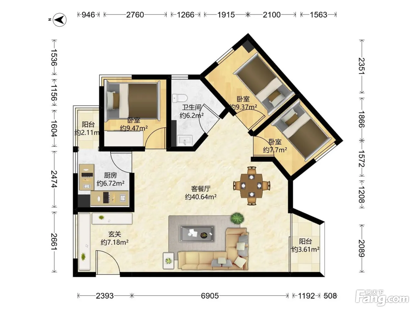 户型齐全,主打户型方正,双阳台,主卧朝南三居