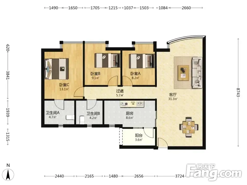 户型齐全,主打南北通透,全明格局三居