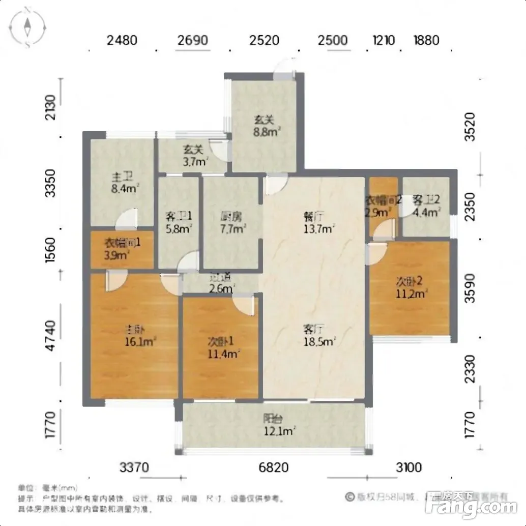 户型齐全,主打明卫,独立衣帽间,双阳台三居