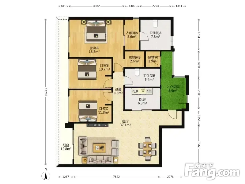 户型齐全,主打明卫,独立衣帽间,双阳台三居
