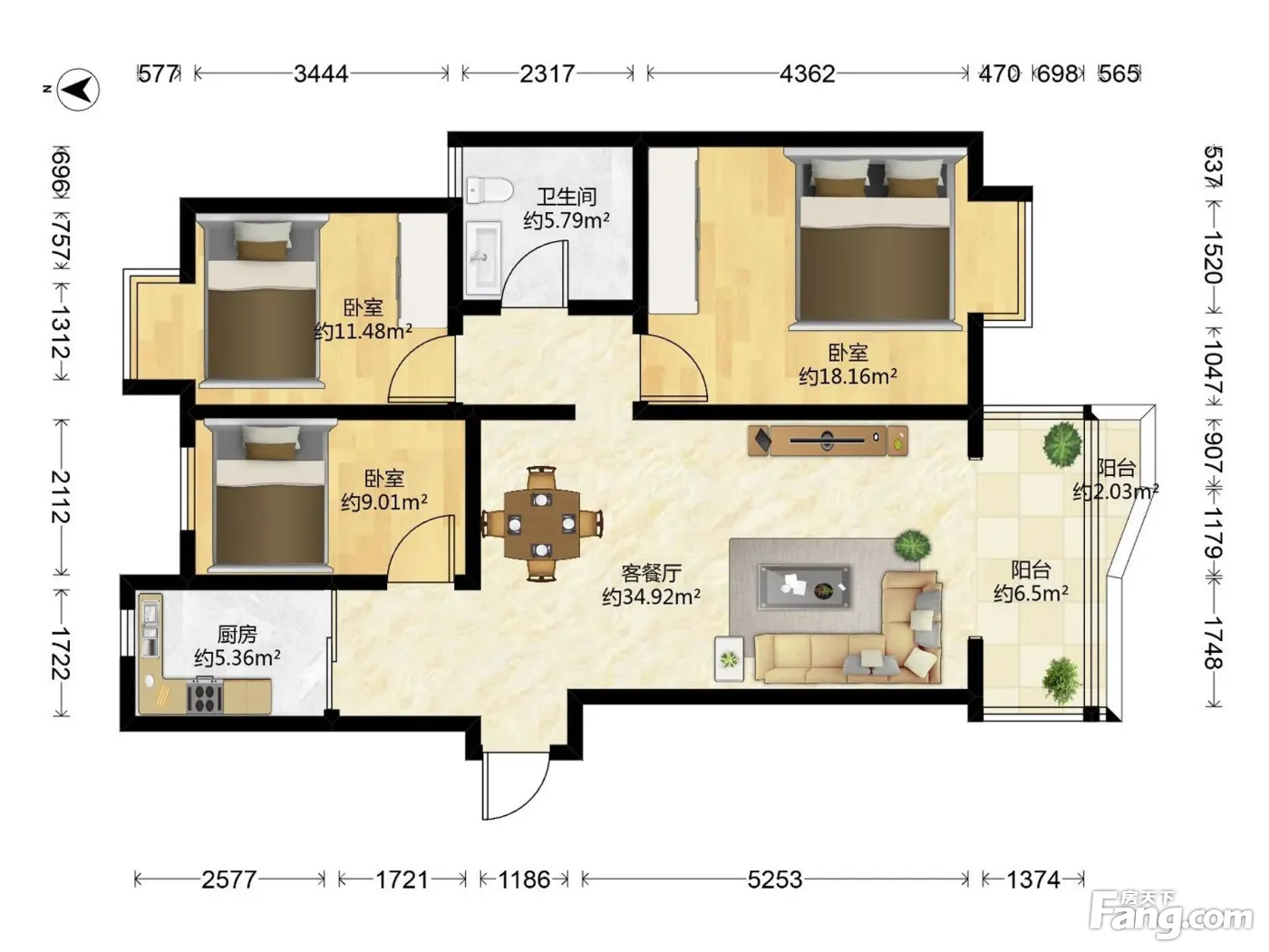 芳草轩 3 房 93.25 方