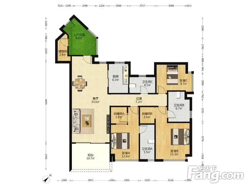 户型齐全,主打明卫,独立衣帽间,双阳台三居