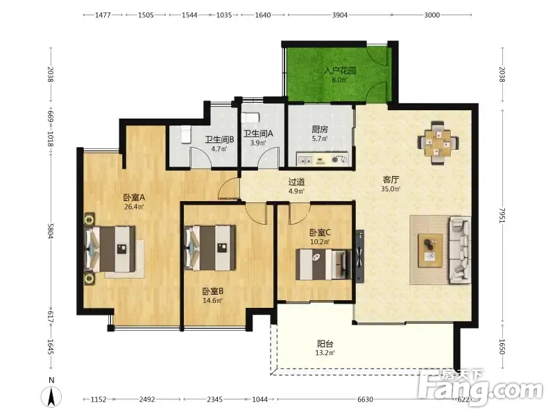 户型齐全,主打明卫,客厅朝南,双卧朝南三居
