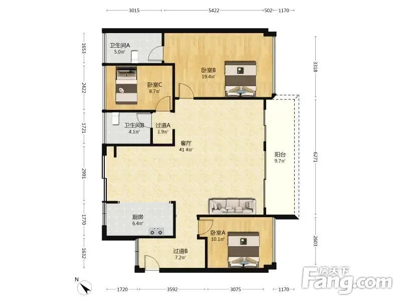 3室2厅1卫